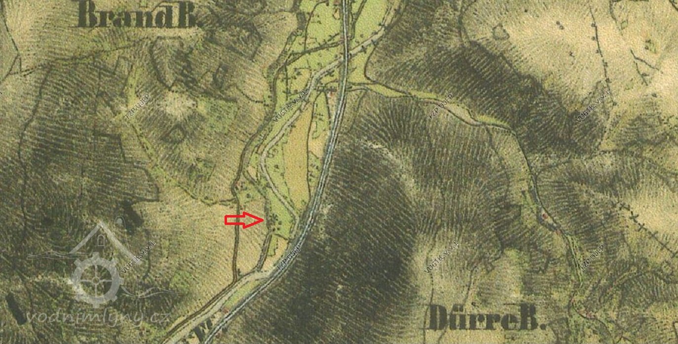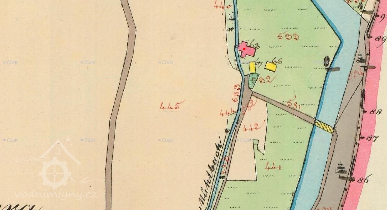 Mlýn je zachycen již na mapě I. voj. mapování.