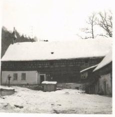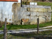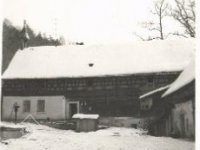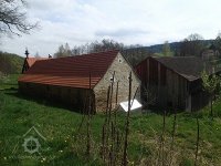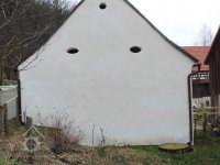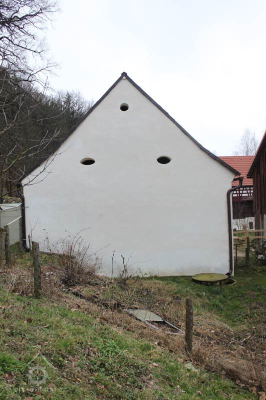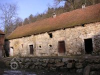 Z lomového kamene vyzděná budova chlévů s datací 1848.