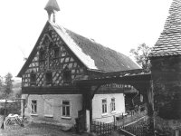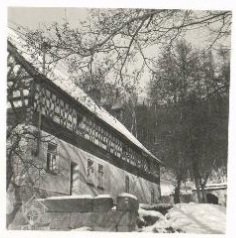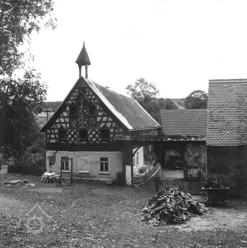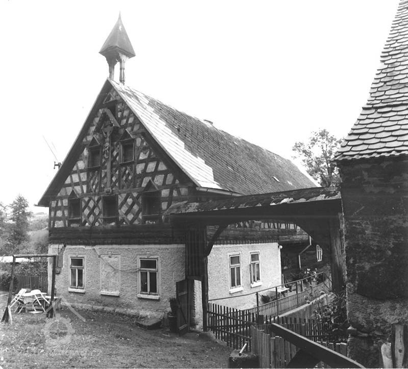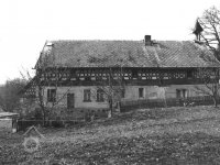 Stavení datováno v rokokové kartuši, umístěné pod křížem: "Errichtet im Jahre 1760 - erneuert im Jahre 1922 von F.Sommer“; kůlna datována na sloupu do r. 1778