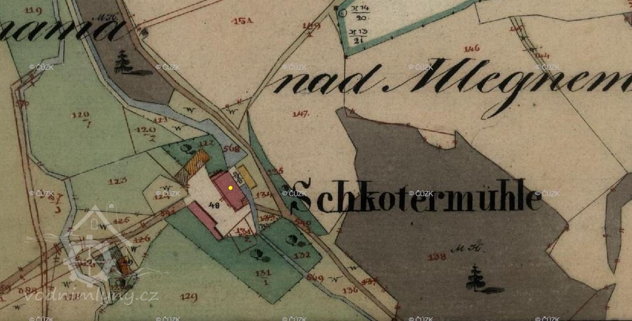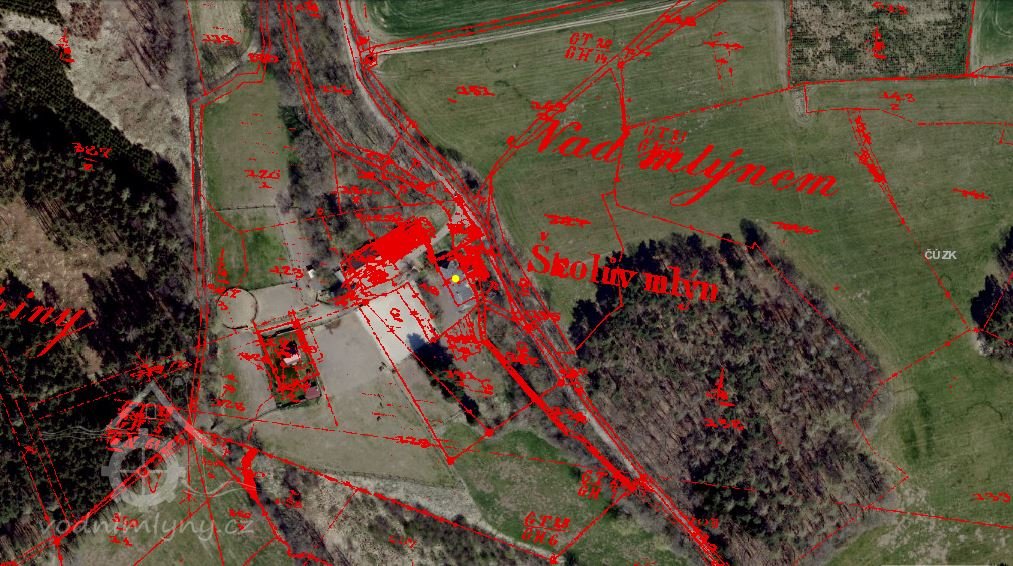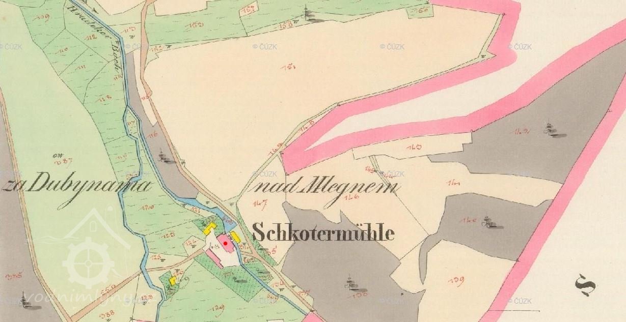 PopisPřes mlýn v minulosti tekl potok, který však byl odkloněn. V terénu je dodnes patrné jeho koryto i odtokový kanál.