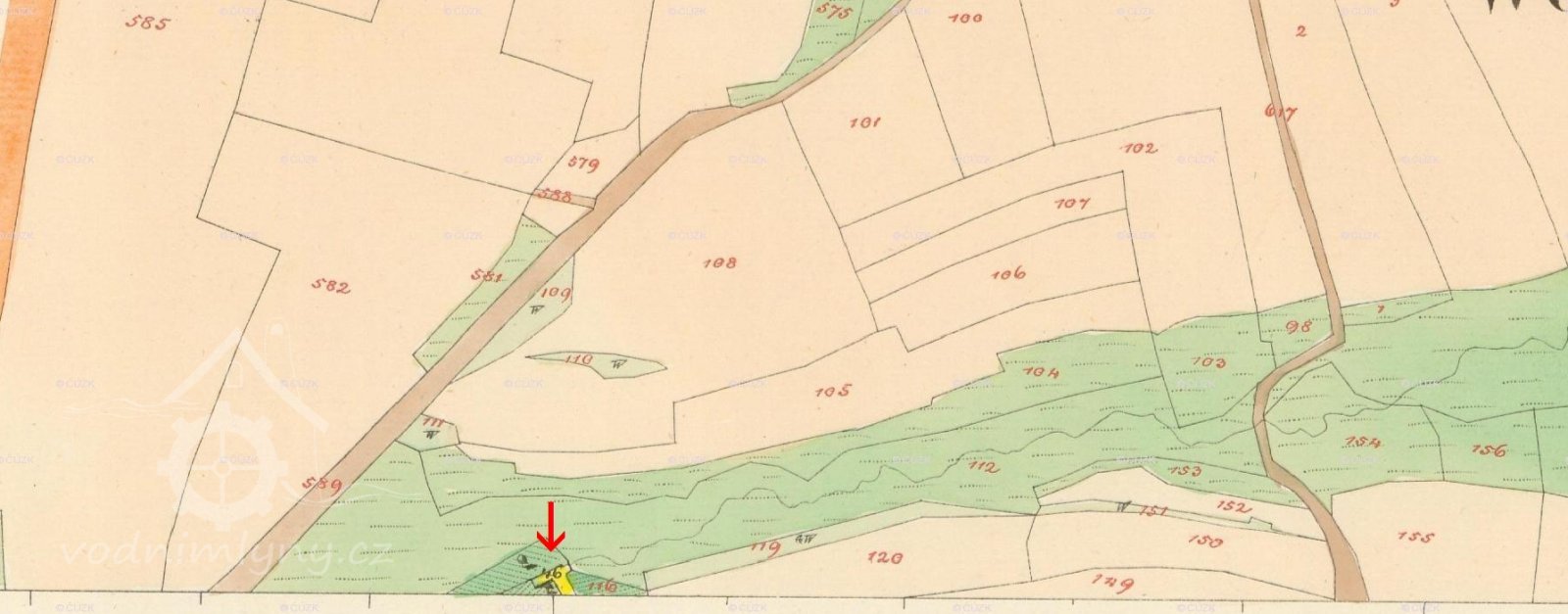 Je znázorněn na I. vojenském mapování a dále též na III.