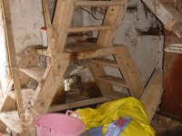 Schody do prvního patra, v minulosti pod nimi procházela hřídel transmise, 2007, © Šimek, (Prvky na obrázku: schodiště)