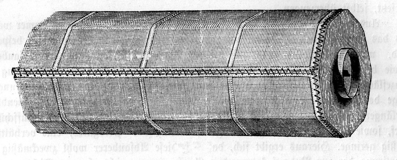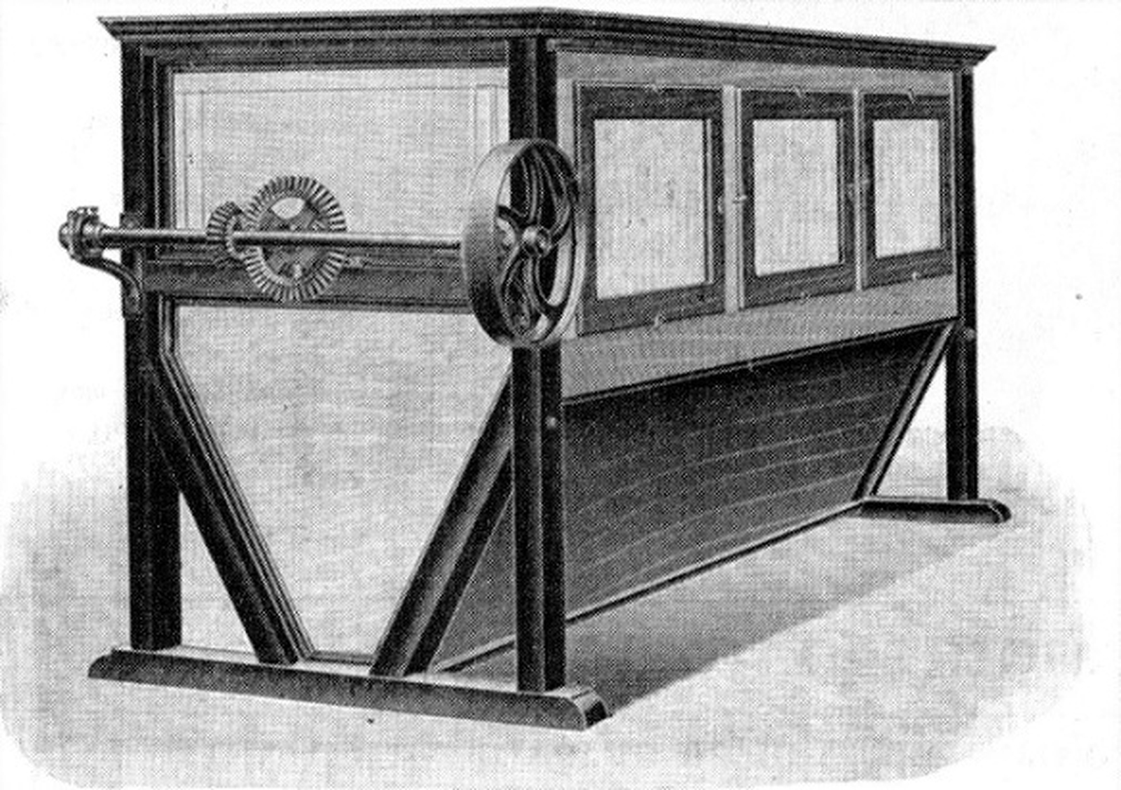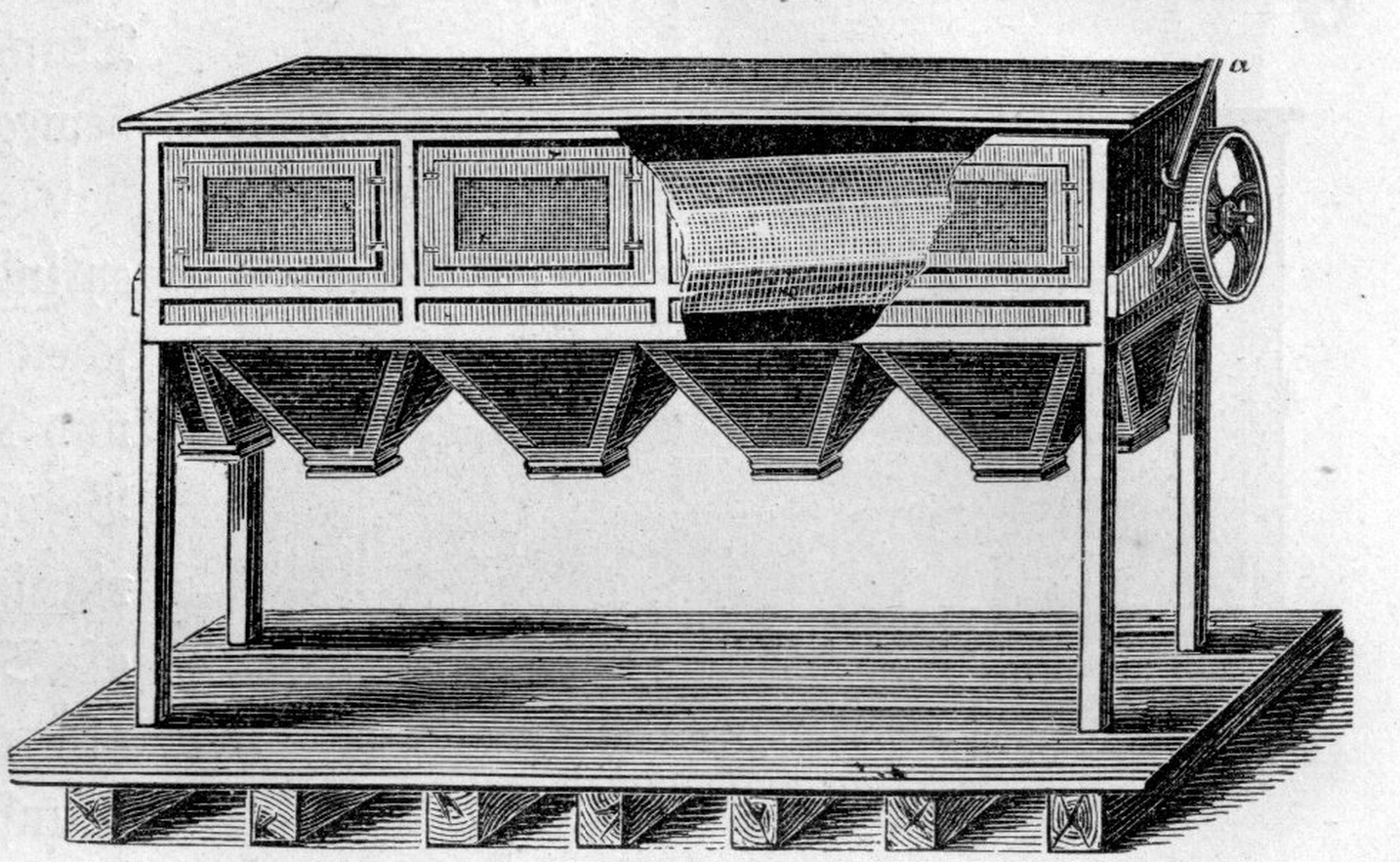Vysévač moučný –  obrázek z knihy Lehrbuch der Müllerei, G. Pappenheim, Wien 1903.