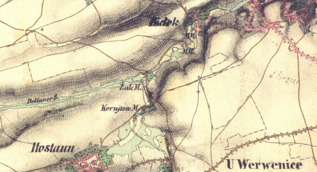 Ukázka II. vojenského mapování (1836 – 1852). Viz oldmap.geolab.cz.
