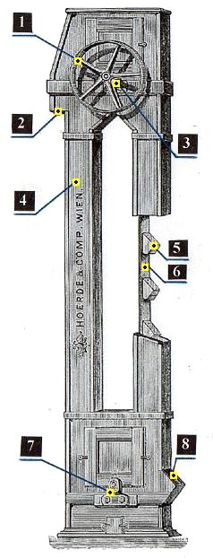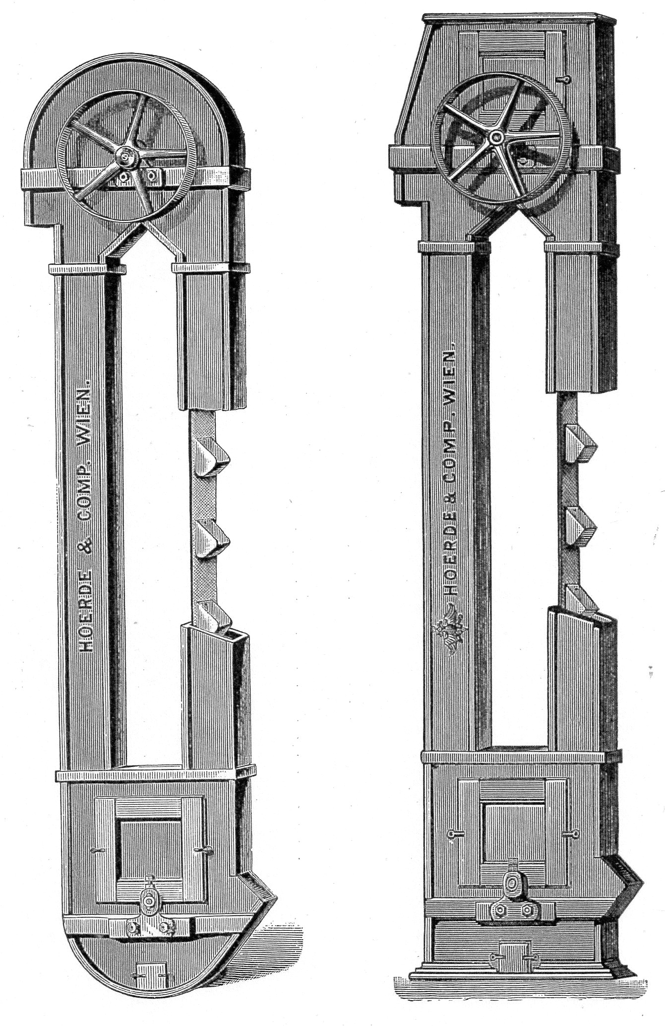 Kapsové výtahy od fa Hoerde Company - Vídeň, obrázek z katalogu firmy, r. 1890.