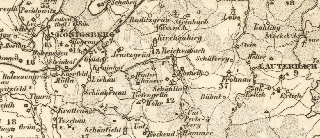 Ukázka z mapy Království českého (1850). Soukromá sbírka.