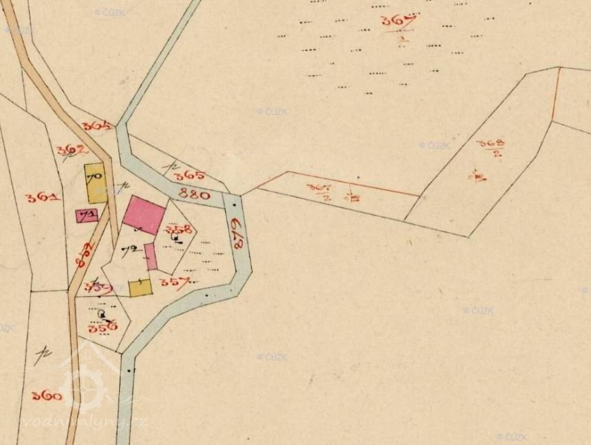 Popis1930: 1 kolo na svrchní vodu, hltnost 0,18 m3/sd. spád 3,8 m, výkon 5,9 HP