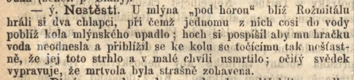 V září 1864 spadl pod vodní kolo chlapec a byl usmrcen. (RR)