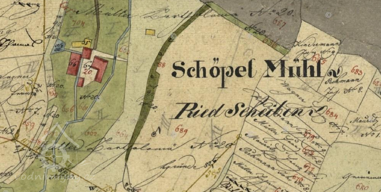 Na Záhvozdském potoce na krásném místě stával od roku 1628 rozsáhlý mlýn zvaný "Schöppl" č.p. 20, roku 1864 byla tehdejším majitelem Vinzenzem Müllerem přistavěna pila. V roce 1911 kompletně vyhořel a následně opraven. Mlýn a pila byl zbořen v 50. letech.
