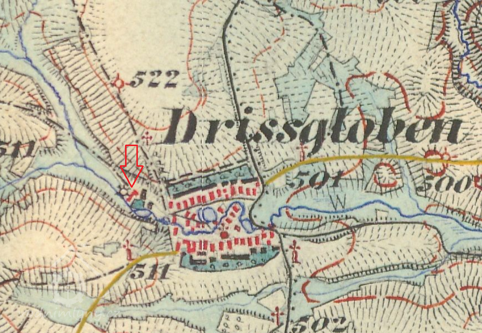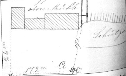 Sčítání obyvatel v roce 1869 zde zaznamenalo mlynáře Antona Hüttla (narozen 1843) s manželkou Theresií (1842), rozenou Brenner, původem ze Stráže, a se synem Josefem (1862). Ve mlýně sloužila děvečka Marie Wilschková, v hospodářství mlynář choval 2 krávy.