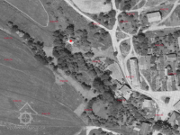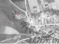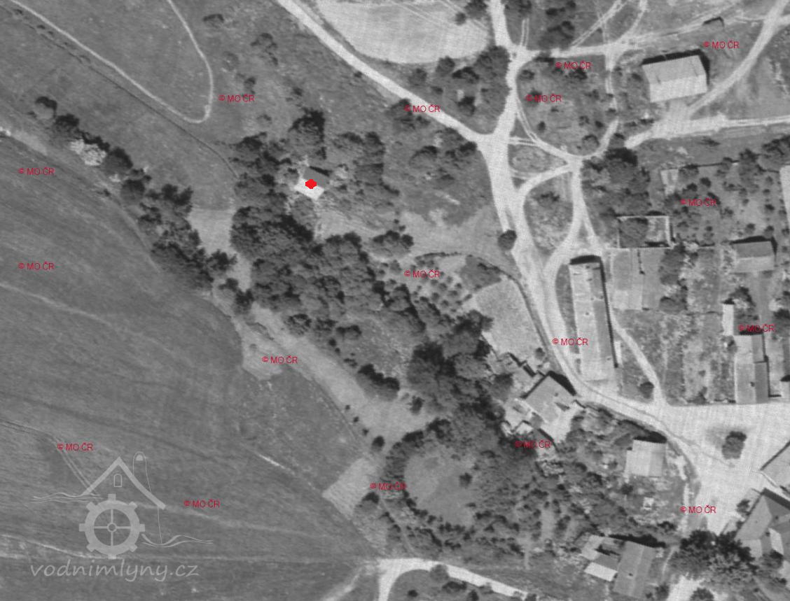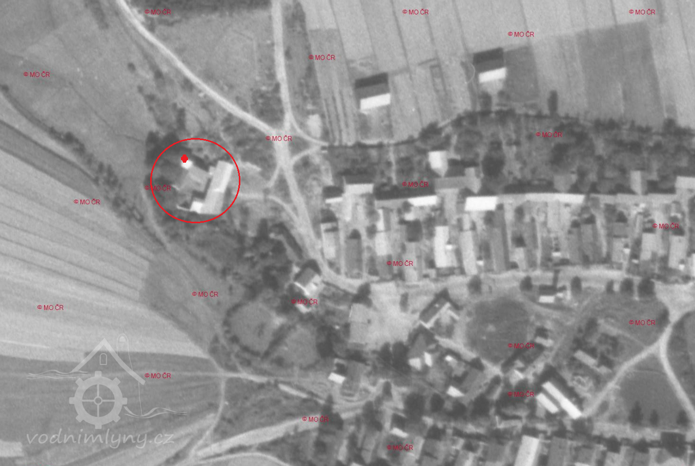 Byly zbořeny všechny budovy usedlosti kromě vlastní mlýnské budovy (viz ikonografie, letecký snímek z roku 1950).