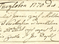 Na začátku 70. let 18. století dostal mlýn č. 27. V té době na něm hospodařil mlynář Johannes (Joannis) Zapf. V matrice obce je k roku 1862 záznam o smrti Barbory, staré 35 roků, manželky Joannies Zapfa, mlynáře v Třískolupech (Trissgloben). Jeho druhou manželkou se stala Ida, rozená Rauch.