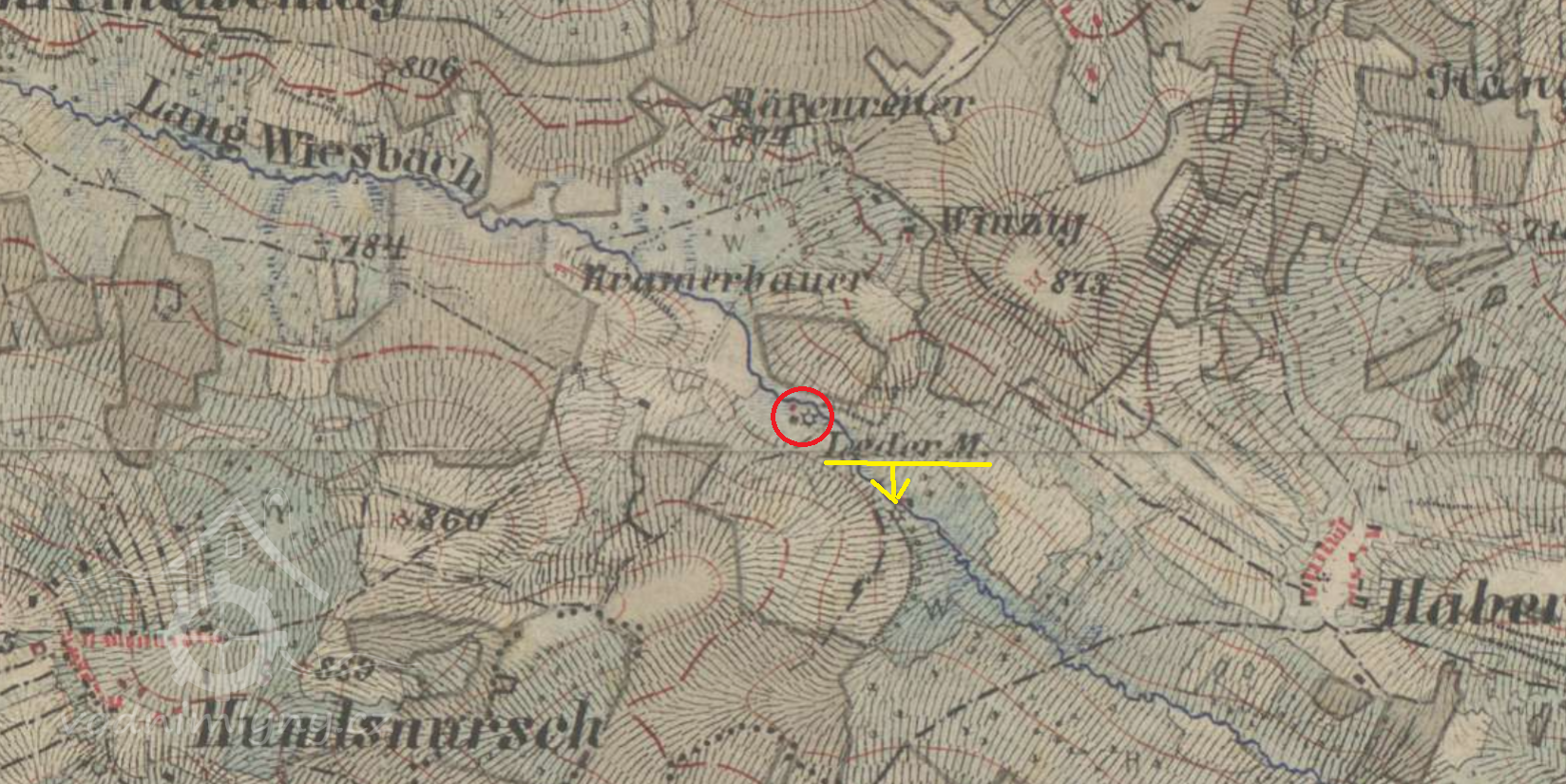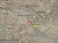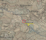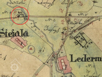 Skupina staveb v k.ú. Ovesné /Haberles/ zobrazená na stejné mapě jako blízký objekt Ledermühle.
