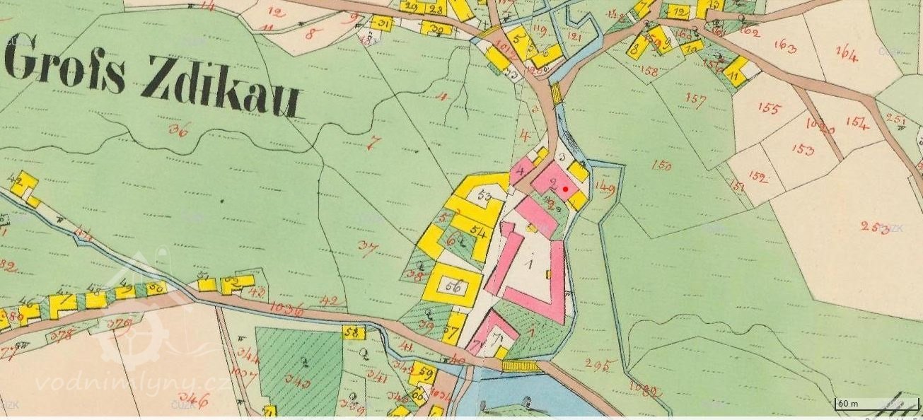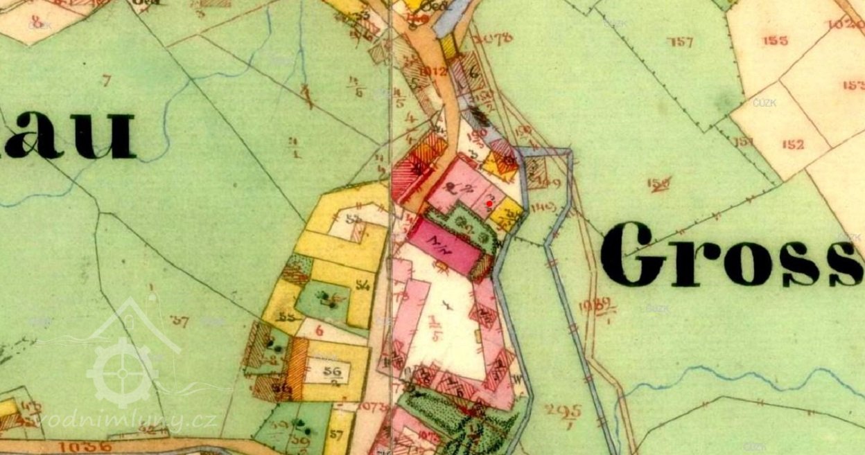 PopisV roce 1930 pohání mlýn kolo na svrchní vodu, hltnost 0,085 m3/s, spád 6 m, výkon 4,2 HP.