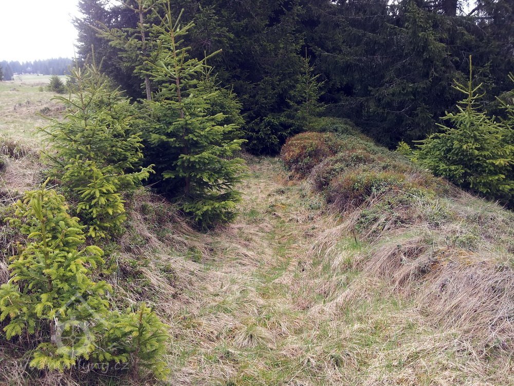 Cca 130 metrů od velké usedlosti čp. 9 po pravé straně cesty směrem k Modravě stál dům čp. 27/st.p. 144 a necelých 300 metrů od velké usedlosti čp. 9, vlevo u hlavní cesty do Kvildy, stála pazderna na st.p. 234 - postavena roku 1903. Tyto dvě stavby byly také ve vlastnictví Kortusových.