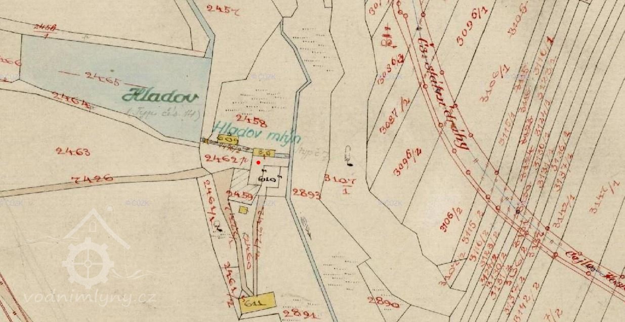 Mlýn a pila, majitel Josef Dvořák (1888, 1903, 1930). Provoz dle dostupních informací již po II. sv. válce neobnoven. Voda k mlýnu přiváděna náhonem z Telečského potoka (Vanůvka), rybník Hladov - pravostranní přítok Telečského potoka využit jako akumulační nádrž. Vodní dílo druhotně využito jako MVE (zřejmě Bánkiho turbína), provoz zhruba do 70. let 20. stol. V roce 2021 je patrné torzo mlýnice s pozdější turbínovou kašnou a torzo zděného základu vodní pily. V roce 2022 srovnán se zemí.