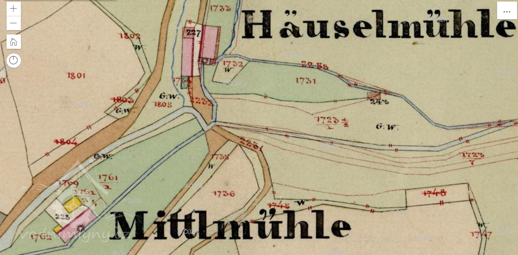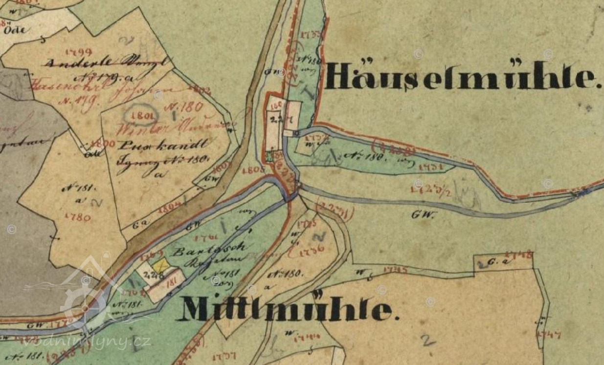 Mlýn v bezprostředním sousedství Häuselova mlýna, na jeho místě dnes stojí jakási chatka.
