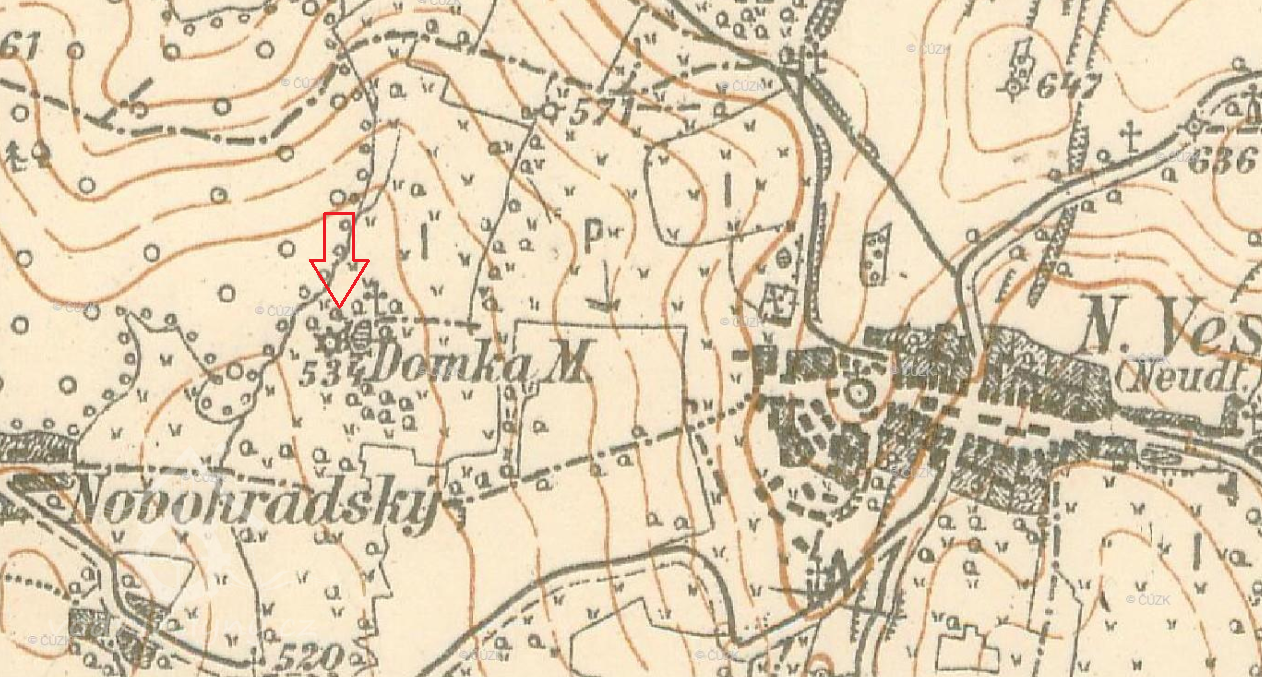 samota, asi 800 m západně od okraje obce Nová Ves