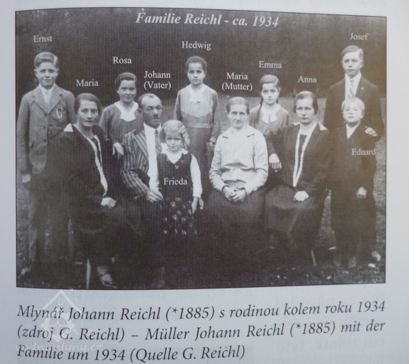 Manželům Josefu a Marii Reichlovým se na mlýně narodilo celkem 13 dětí, mezi nimi i syn Johann (1885), který se stal dalším majitelem mlýna společně s manželkou Marií, rozenou Marethovou (1888).