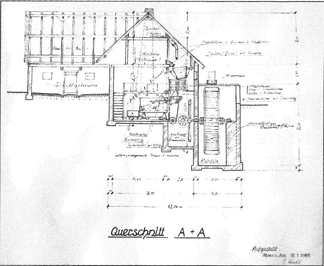 Mlýn měl jedno klasické složení s mlecími kameny, lubem a násypným košem.