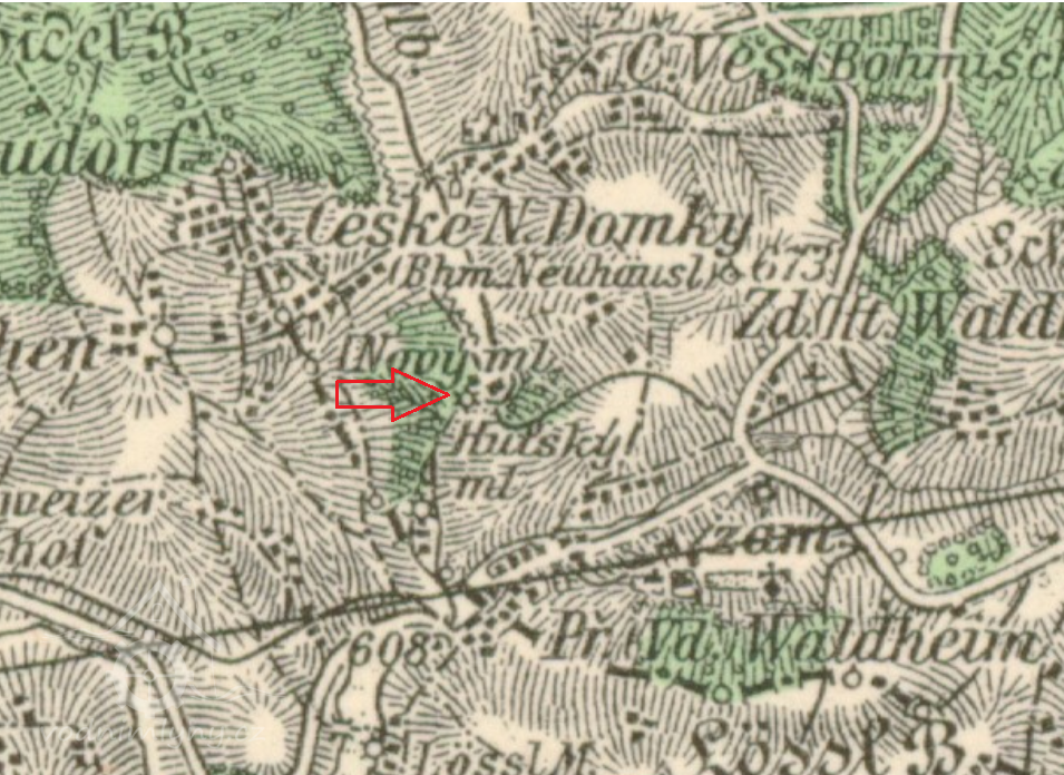 Sčítání obyvatel v roce 1869 zde zastihlo mlynáře Georga Brauna (narozen 1804) a manželkou Annou (1817) a synem Wenzlem (1844), který pracoval jako mlynářský tovaryš. Ve mlýně vypomáhal Lorenz Nahma.