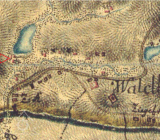 I. vojenské mapování z let 1764–1768 zobrazuj mlýn s rybníkem. Po hrázi rybníka probíhala katastrální hranice mezi Českou Vsí a Zahájím. Rybník ležel na úžení České Vsi, mlýn na území Zahájí. Tato situace je potvrzena na mapách stabilního katastru z roku 1838.