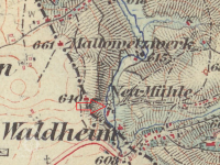 Součástí Waldheimu se stal také mlýn. Tereziánský katastr zde k roku 1757 zaznamenal mlynáře, který měl v nájmu panský mlýn s jedním kolem a pilu na nestálé vodě.