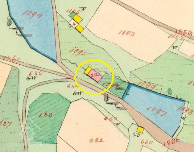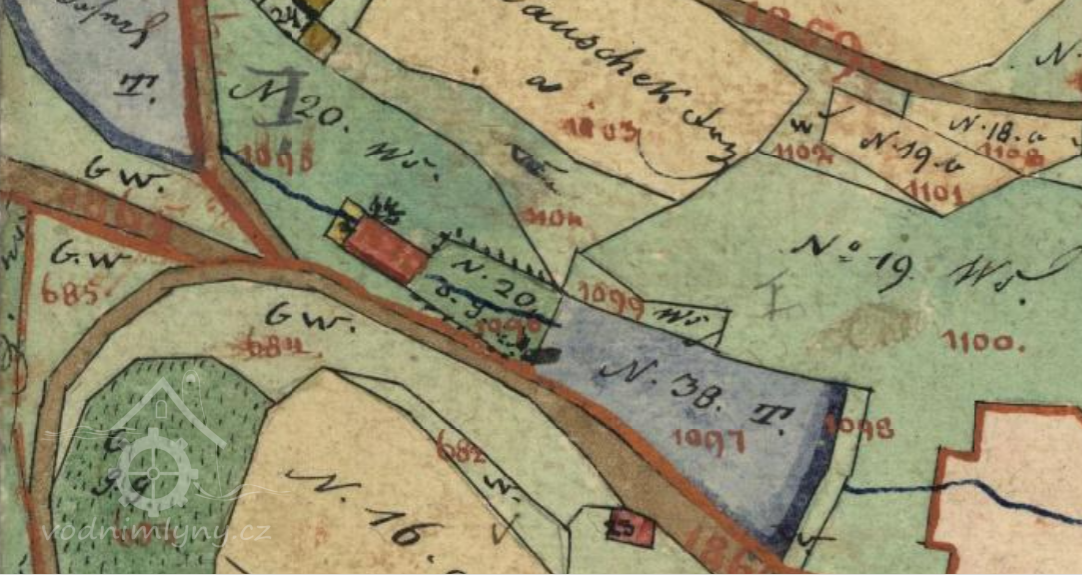 Mlýn zachycen na II. vojenském mapování, v roce 1903 mlýn s jedním složením, majitel František Kříž, v 1908 Jan Uhlíř. V roce 1930 je uveden šrotovník poháněný jedním vodním kolem na svrchní vodu (spád 6,2 m, průtok 37 l/s, výkon 2,2 ks), majitel Jan Uhlíř.
