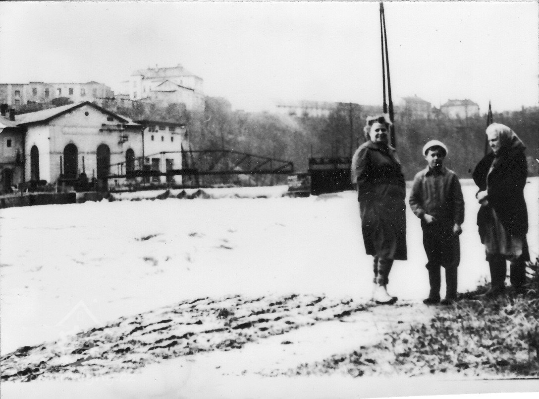 Roku 1876 vystavěl si tkadlec štruksu Josef Přibyl z Nového Města nad Metují domek přízemní u dráhy při řece Metuji „na Pražance“ (pozemek v katastru obce novoměstské) a postavil si v něm stroj na družení (cvernování) příze s pohonem vodním. Místo řemenů používal popry (tkané pásy). Jez čili splav postavil si sám vlastní rukou. Ale po půl roce stroj cvernovací odstranil a zařídil si zde mlýn o 1 složení, říkalo se zde „ve mlýnku“. Josef Přibyl zakoupil roku 1878 obecní pozemek na zřízení vodní strouhy u mlýna na Pražance a zaplatil za něj 40 Kr. za 1 čtvereční sáh. Jelikož se zadlužil, byl nucen mlýn tento číslo popisné 129 b prodati a dne 1.října roku 1879 koupili ho manželé Jan a Anna Holečkovi z Černilova. Ti postupem času mlýn rozšiřovali, pecnářstvím a výrobou hnětacích strojů na těsto (díže) se zabývali a při tom se finančně zakrváceli, takže dne 6. dubna roku 1903 uvalen na jmění Jana Holečka konkurs.