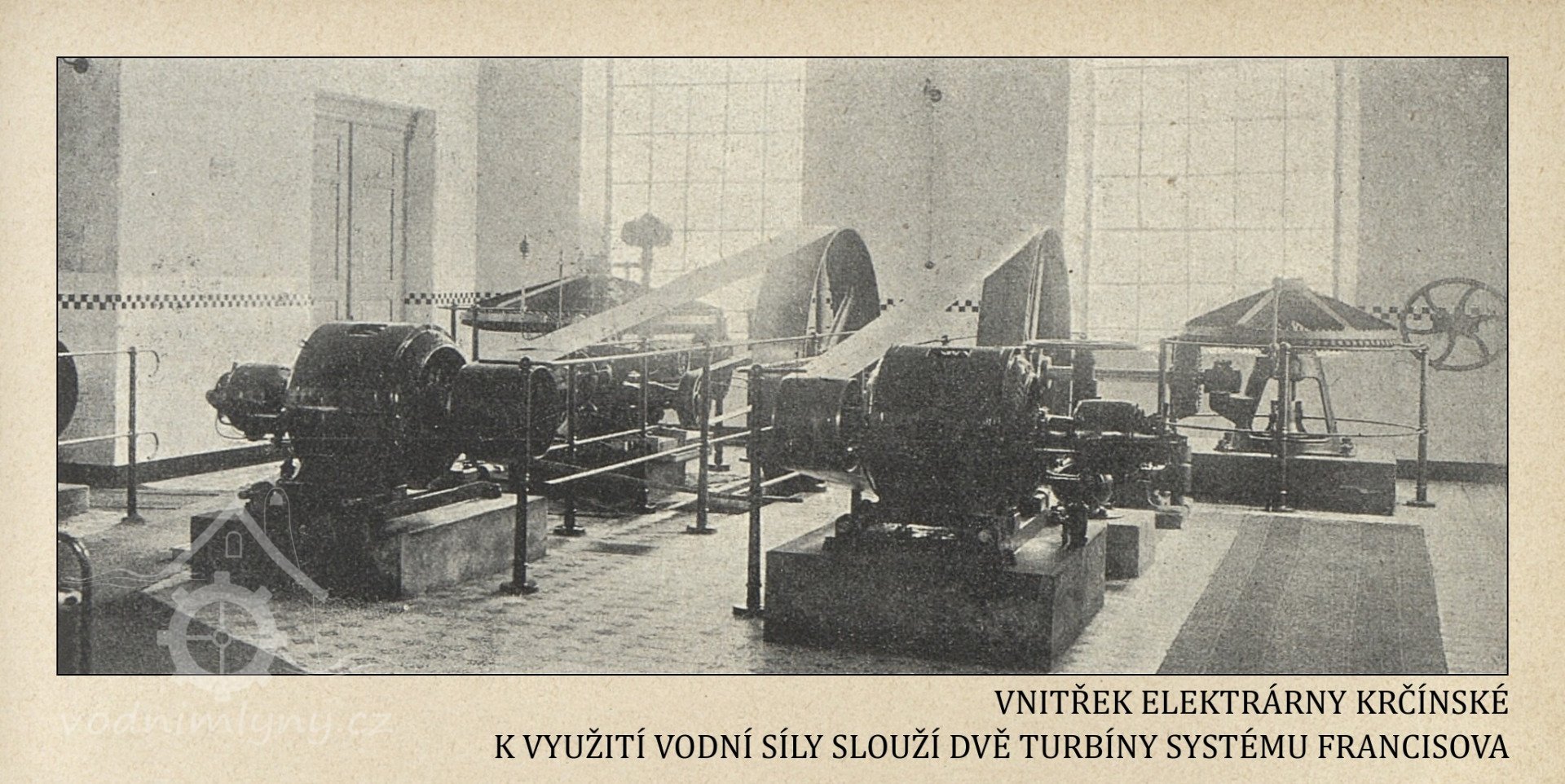 1930: 2 turbíny Francis, hltnost 3,42 m3/s, spád 1,745 m, výkon 59,7 HP