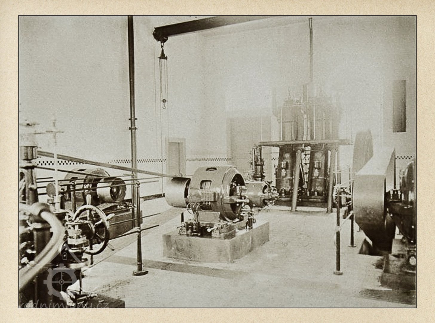 1876 stroj na družení (cvernování) příze s pohonem vodním