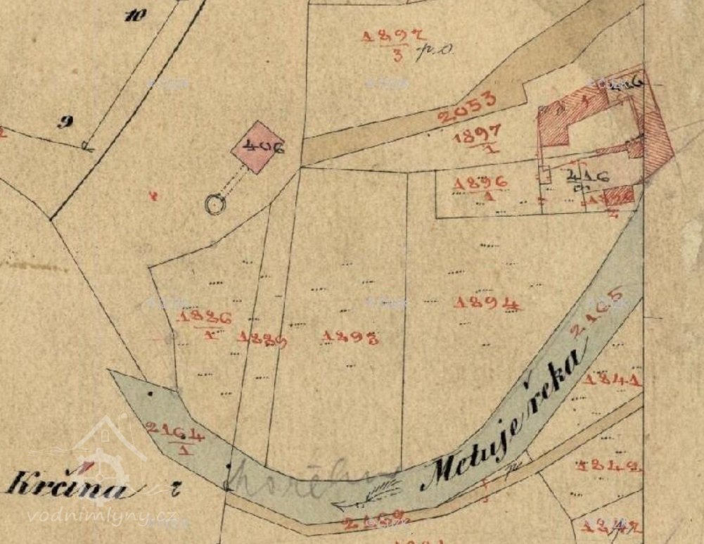 Roku 1876 vystavěl si zde tkadlec štruksu Josef Přibyl přízemní domek a v něm měl stroj na družení (cvernování) příze s pohonem vodním. Po půl roce stroj cvernovací odstranil a zařídil si zde mlýn o 1 složení, říkalo se zde „VE MLÝNKU“ V roce 1907 mlýn vyhořel a již nebyl obnoven. V roce 1909 bylo vloženo na mlýn právo vlastnické obce krčínské, která ve mlýně (který ovšem leží na katastru Nového Města n/M) zřídila elektrárnu.