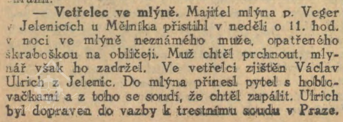 Jednou přepadli Petrovští osamělý mlýn v Jelenicích u Mělníka. Zabušili na vrata a rozkázali: „Otvírejte, Petrovští jdou k vám na návštěvu!“ Tu však narazila kosa na kámen. Mlynář se nezalekl a jeho chasa se počala s lupiči tak udatně bít, že ti museli se zkrvavenými hlavami ustoupit. Jednomu z lupičů dokonce v bitce uťali ruku.