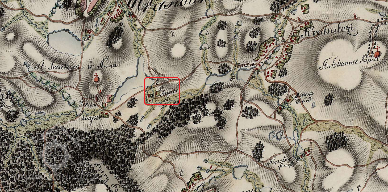 3,5 km západně od kostela sv. Jana Nepomuckého v Krahulčí