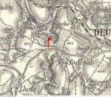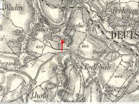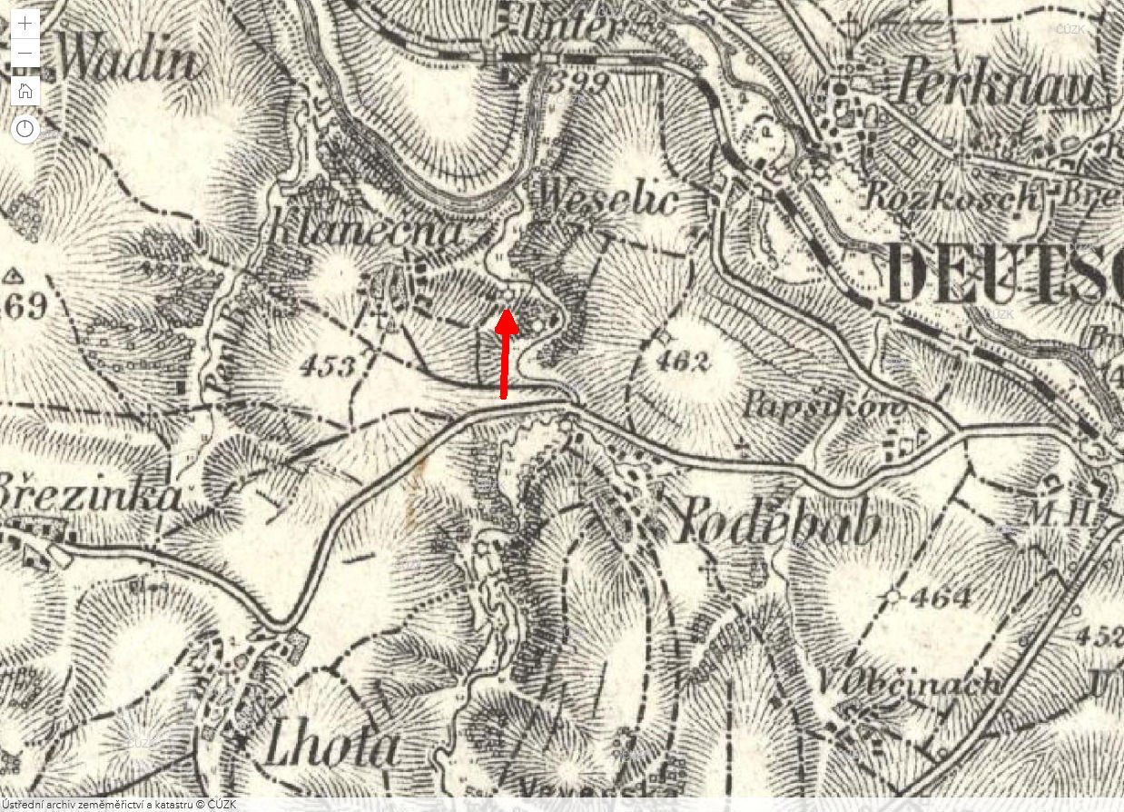 Východně obce, z jejího středu cca 450 m vzdušnou čarou, dnes bez přístupové cesty.