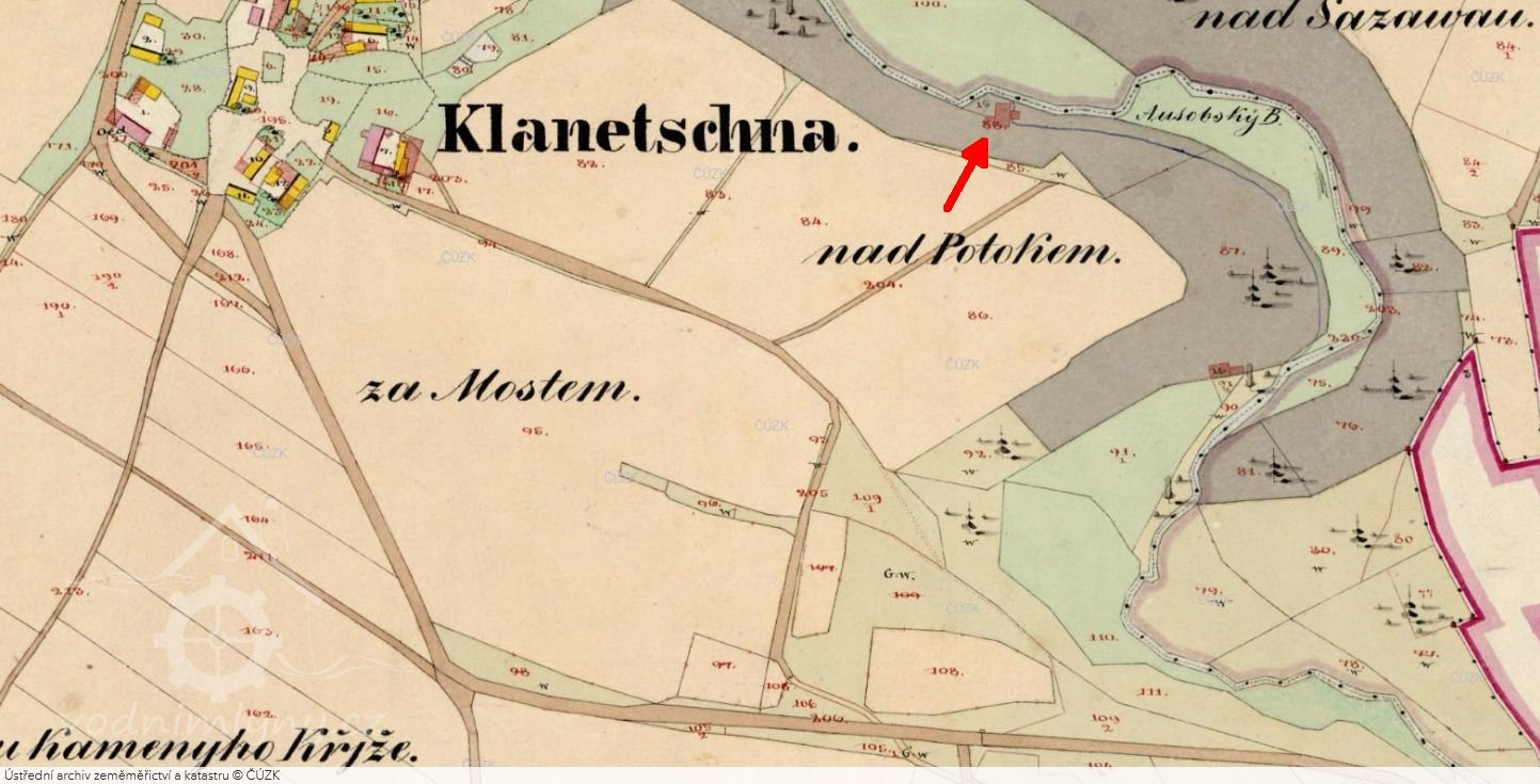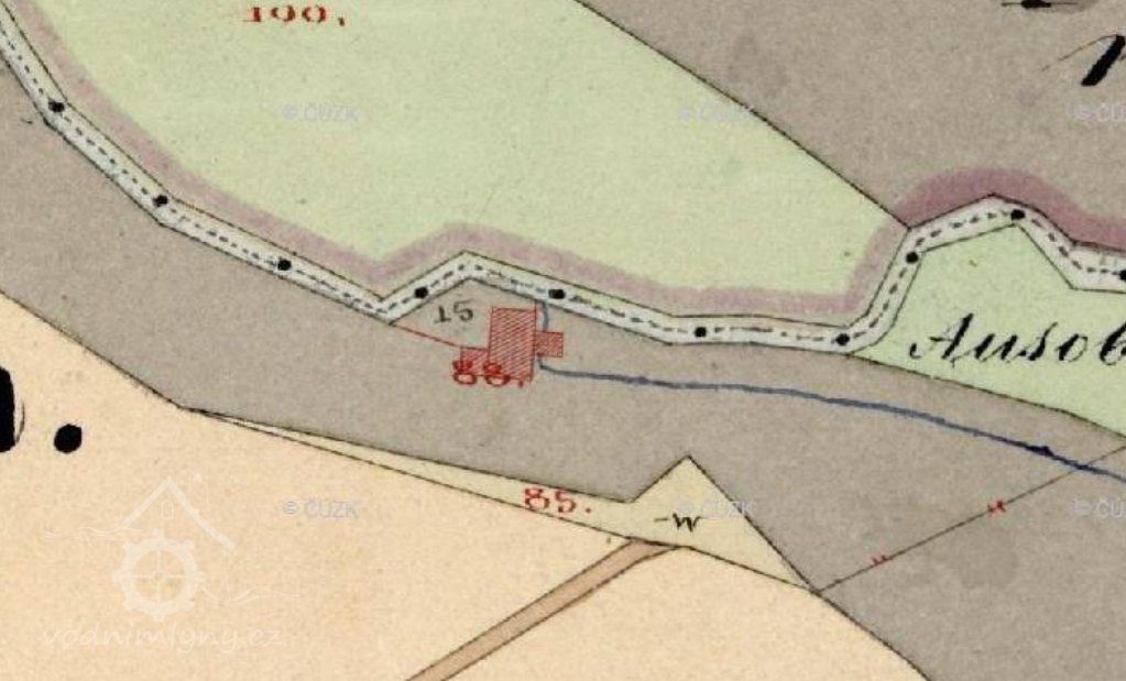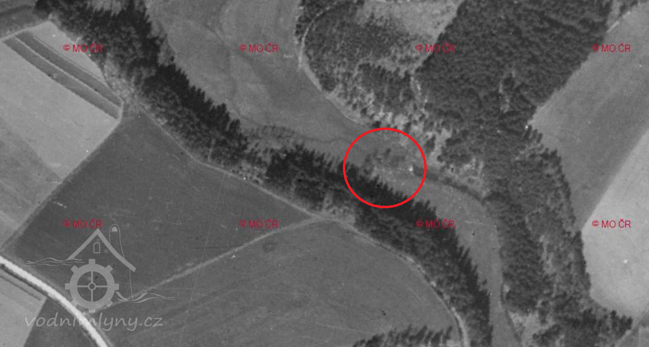 Mlýn doložený z druhé poloviny 19. a první poloviny 20. století. Dnes již neexistující. V terénu jen čitelně dochovaný půdorys (valová destrukce kamenných zdí) mlýna a vyústění příslušného náhonu. Zachované zbytky zdi na parcele 222 - les a náhonu dlouhého cca 350 m vedoucího převážně po parcele 87/1 - les.