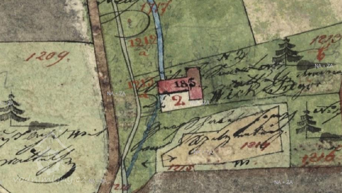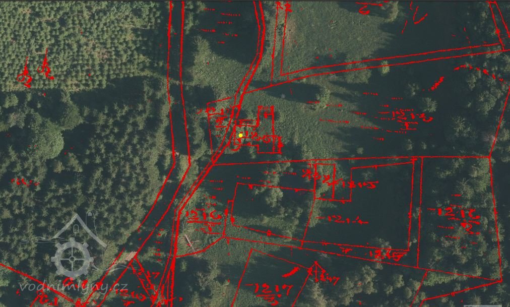PopisV roce 1930 pohání mlýn s pilou kolo na svrchní vodu s průtokem 0.11 m3/s, spádem 5 m o výkonu 5 HP.