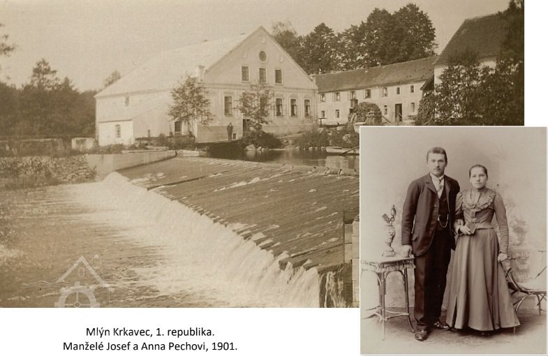 1941 Josef Pech předal synu Vladimíru Pechovi, ve mlýně se mlelo a peklo na černo. (Jindřich Řeřab: "Vzpomínky na život v Krkaveckém mlýně v letech 1942 a 1943")