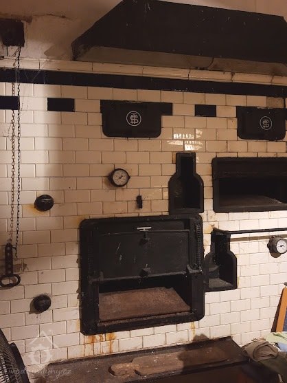 parní pekárna na 300 kg chleba (100-150 bochníků) denně, měla vlastní generátor horké páry, vyráběné v parním uhelném kotli, z hygienických důvodů byly pekárna a prostor kotle odděleny. Měla dva pečící prostory - první s vysokou teplotou a druhý pro dopékání. O vánočních svátcích se zde pekly i vánočky.