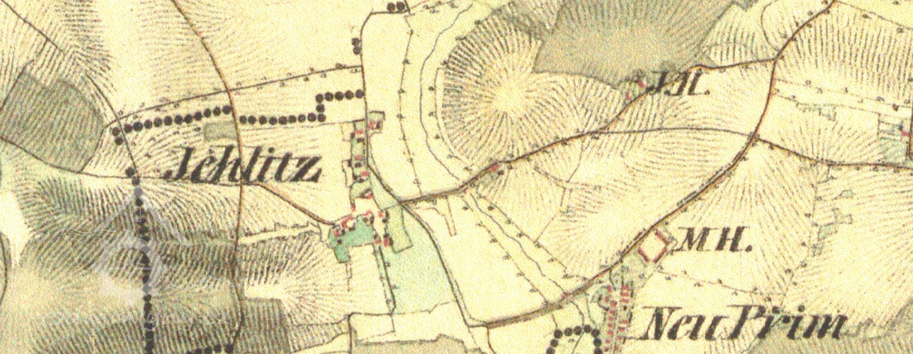 Mezi Jehlici a Nový Přím bývala dříve situována dvojice velkých rybníků - Návesní a Mlýnský, jež byla dotována vodami Radostovského potoka, případně vodami výše položených vodních ploch - Starého a Nového rybníka. A právě na hrázi mezi Návesním a Mlýnským rybníkem, kudy vedla rovněž cesta z Jehlice k Dolnímu, Hornímu i Malému Přímu se nacházel rovněž panský mlýn, jehož počátky nám nejsou známé. Můžeme uvažovat o tom, že již existoval kolem roku 1540, když Jehlice připadla k přímskému panství. S jistotou víme, že jeho existence je doložena k roku 1626.