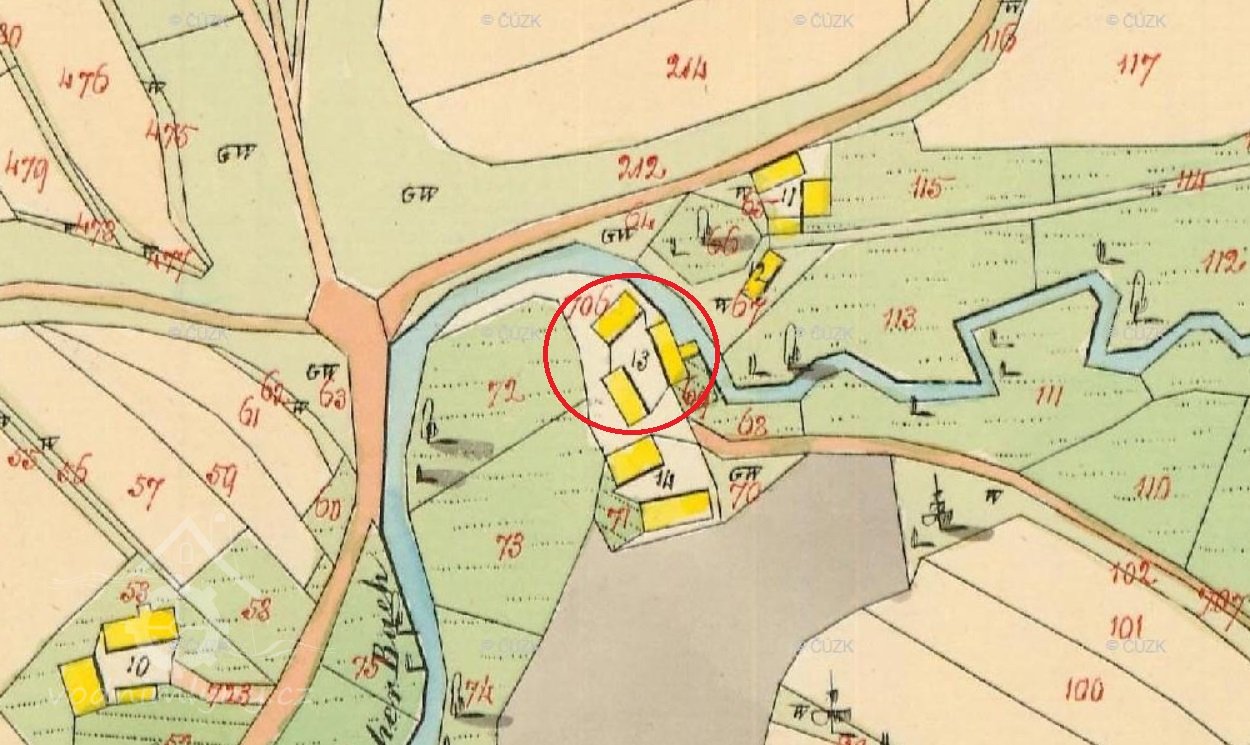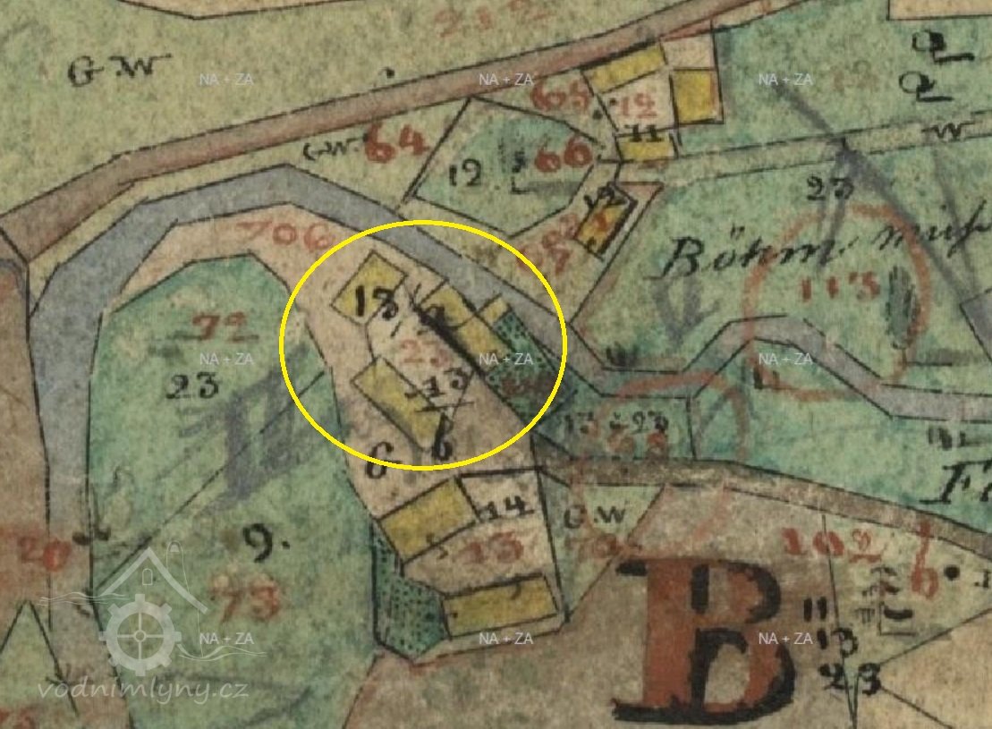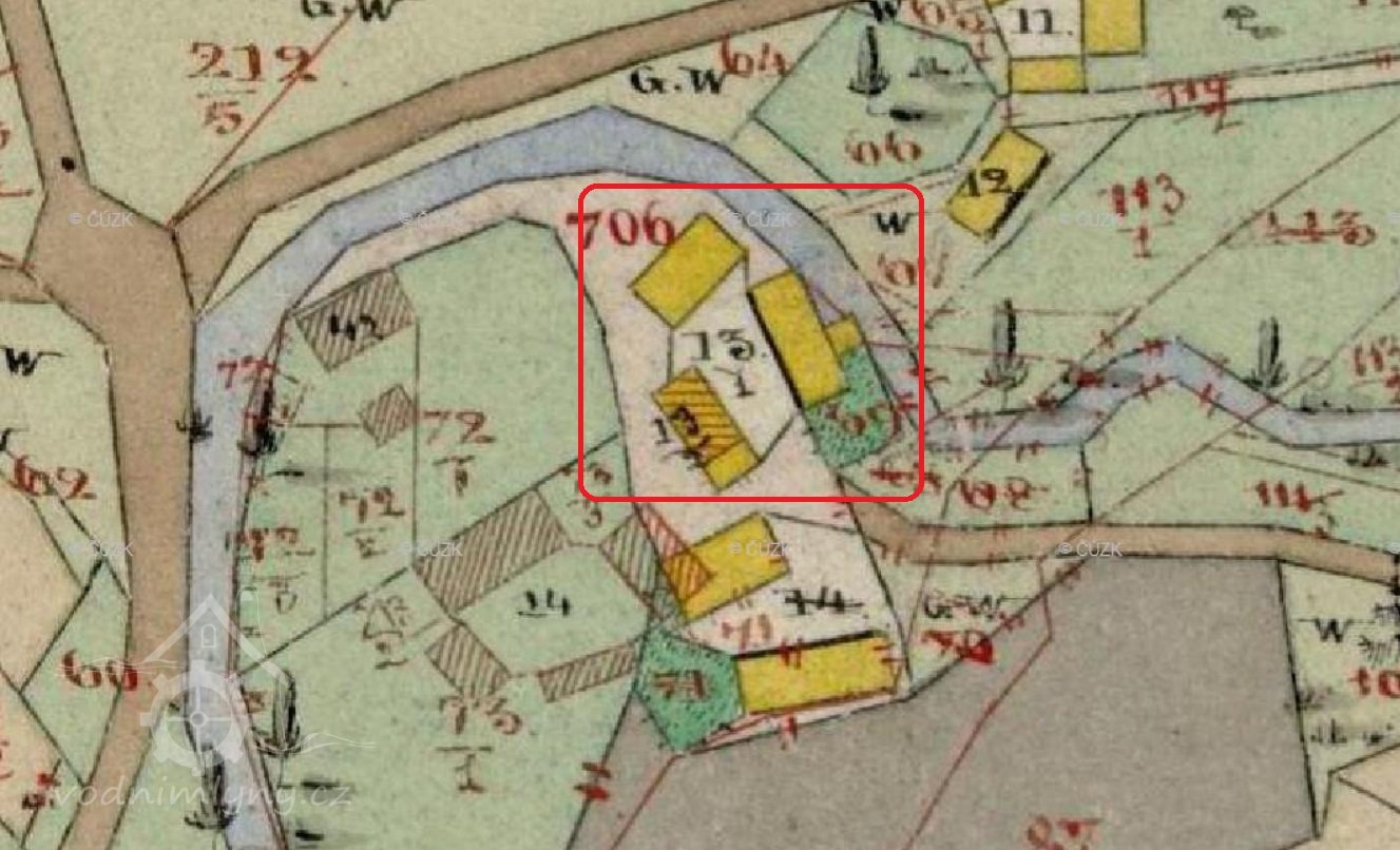 Popis1930: 1 kolo na svrchní vodu, hltnost 0,07 m3/s, spád 3,6 m, výkon 2,1 HP
