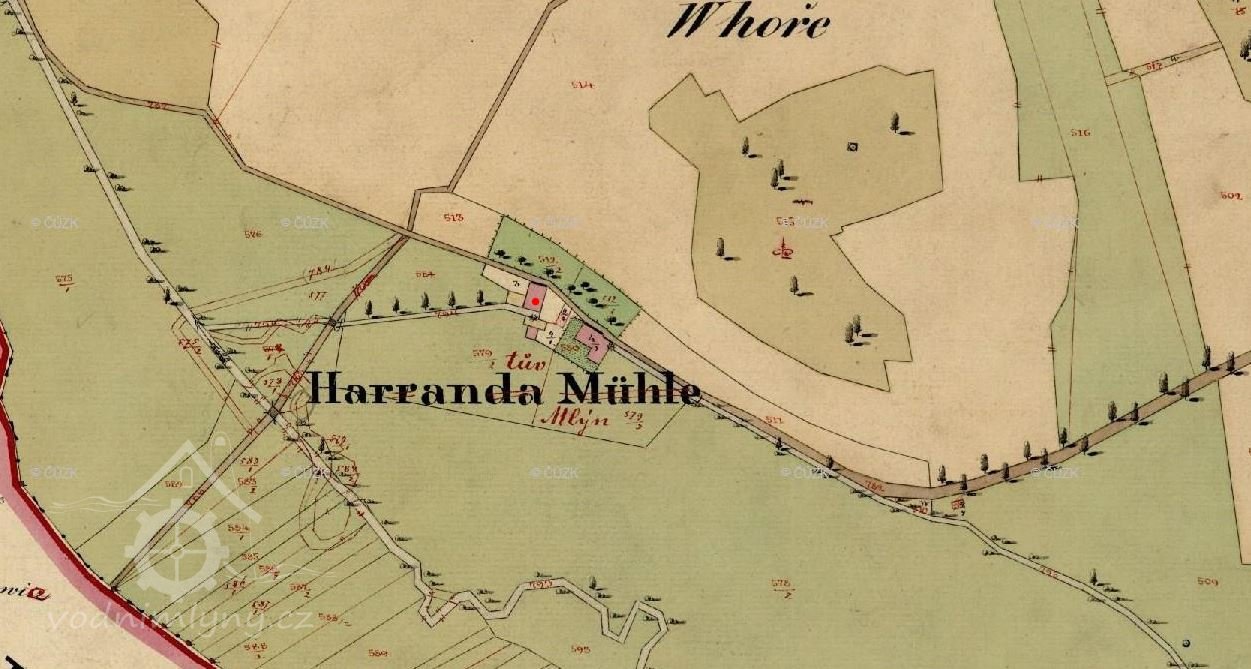 Za Jiřího Haranta u mlýna údajně zřízeno čerpadlo pro zásobování hradu vodou.