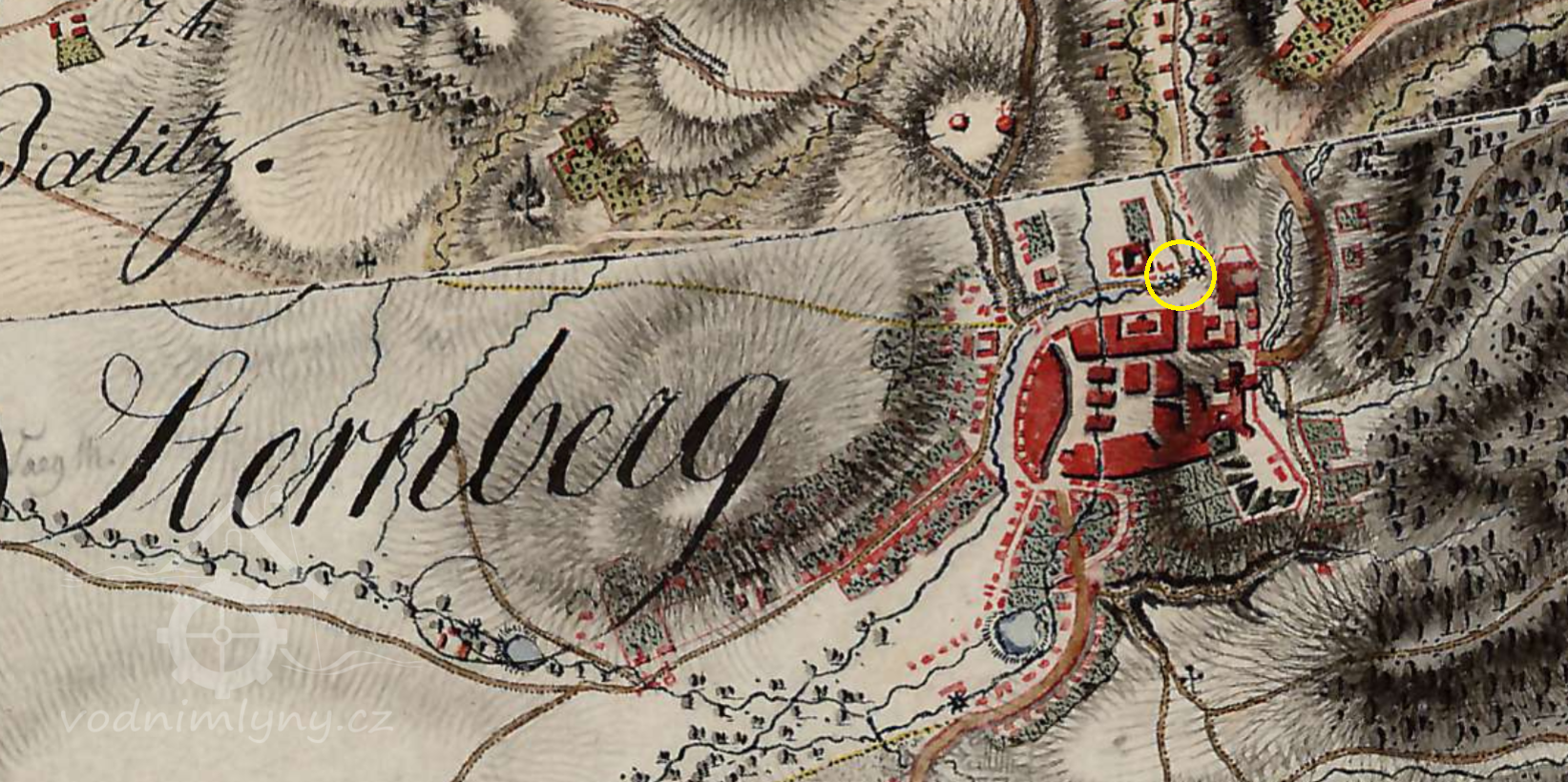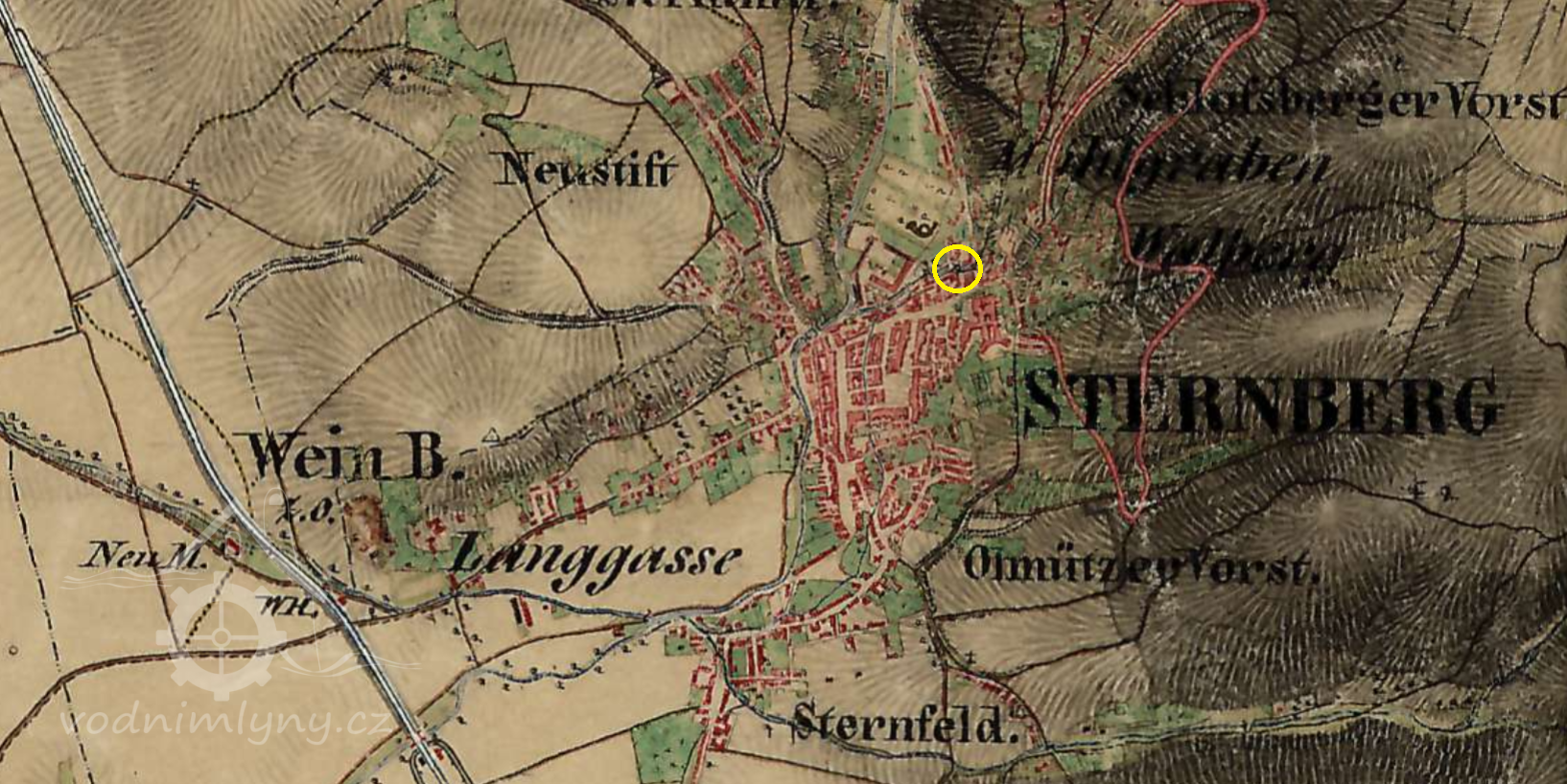 Mlýn založený 1857, v 80. letech adaptován jako na parní a titulován První šternberský parní mlýn,