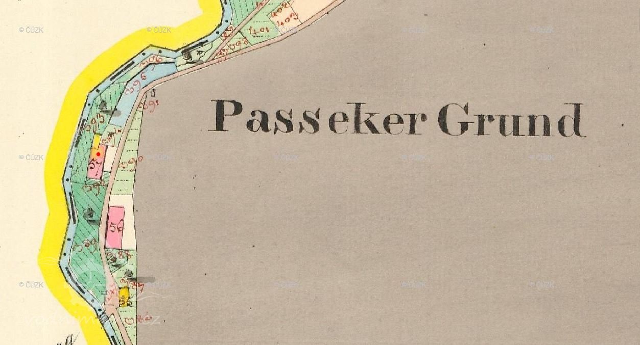 Mlýn a pilu zde nechává vrchnost postavit kolem roku 1800, kdy se Passekgrund, jak se místu německy říkalo, začíná objevovat v listinách. Kolem mlýna postupně vznikaly i další usedlosti.