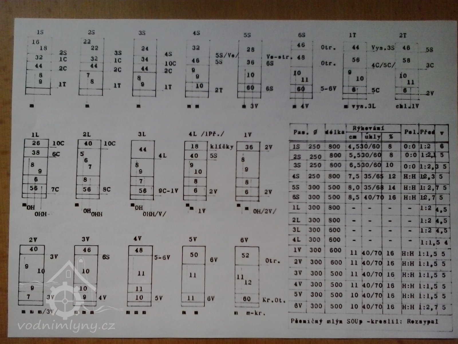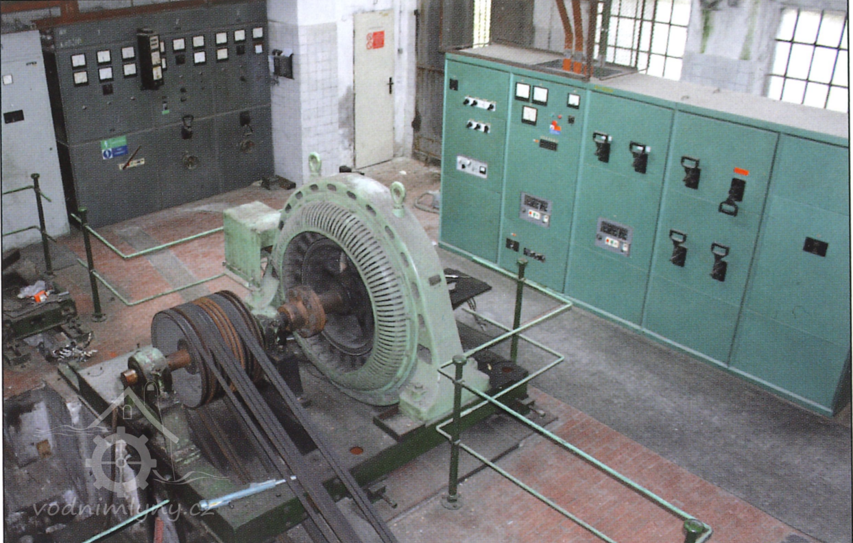1930: 2 turbíny Francis, hltnost 1,4 m3/s, spád 3,6 m, výkon 100,43 HP