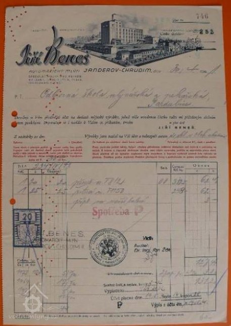 mlýn přestavěn na válcový s devíti páry válců, zpracuje 100 q obilí denně, ročně 300 vagonů obilí