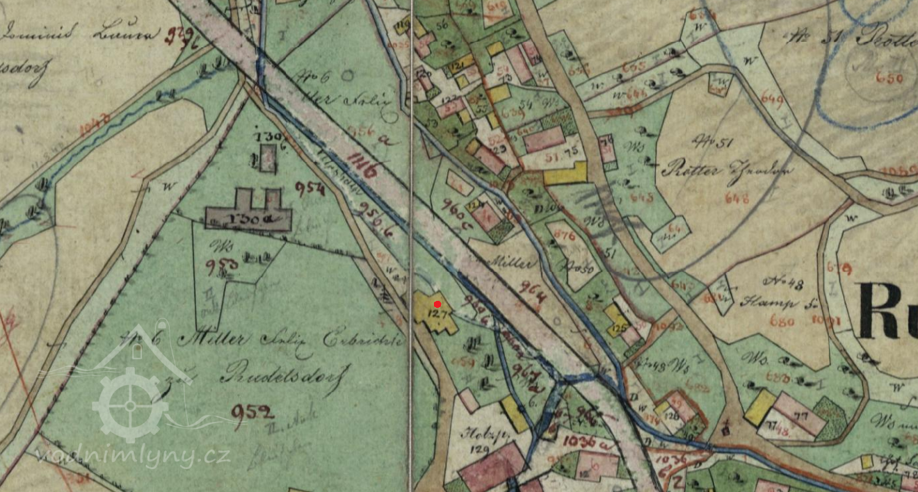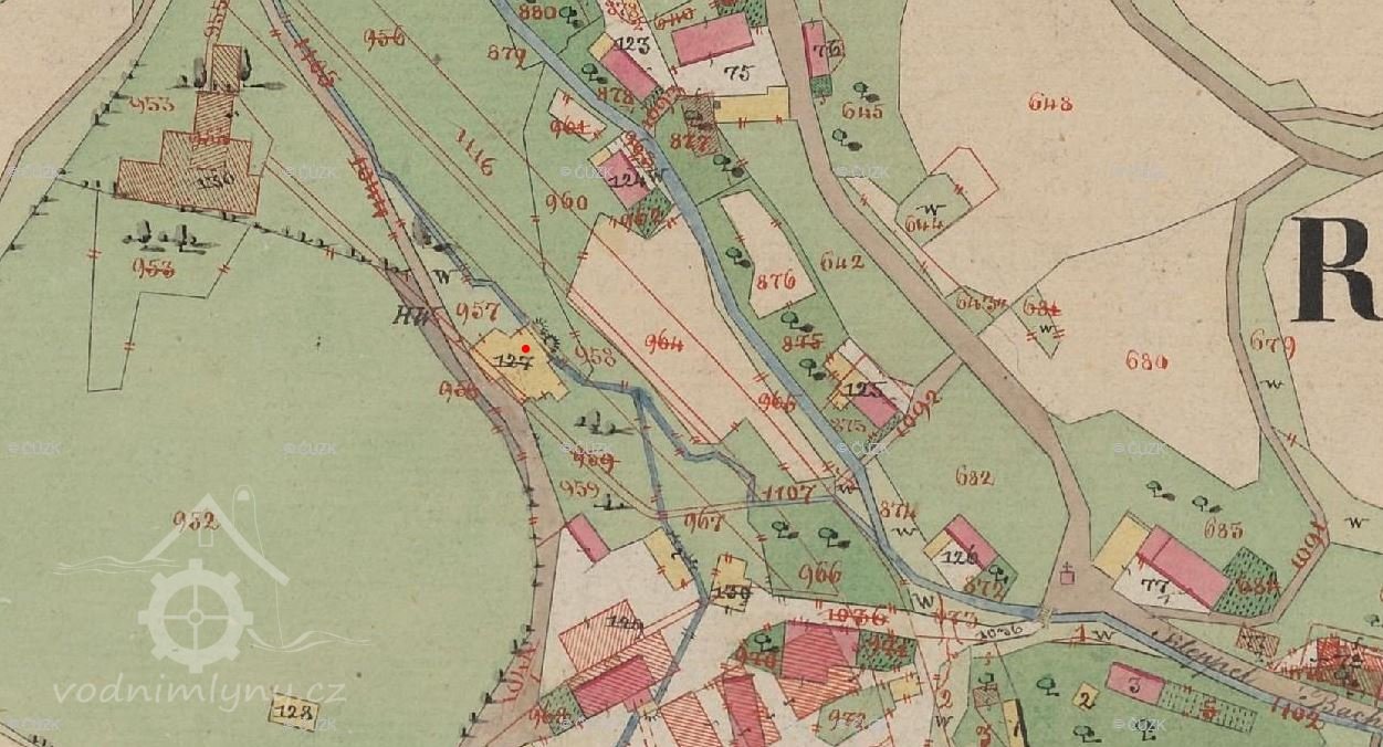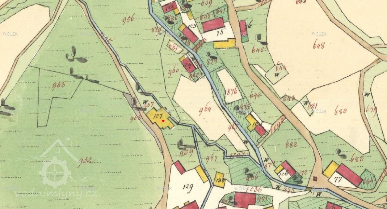 Mlýn náležející k hospodářství čp. 50, zaniklý již kolem poloviny 19. století, je možné, že jeho zánik souvisel se stavbou nového mlýna o něco níže po proudu, dnes mlýn v místě nic nepřipomíná.