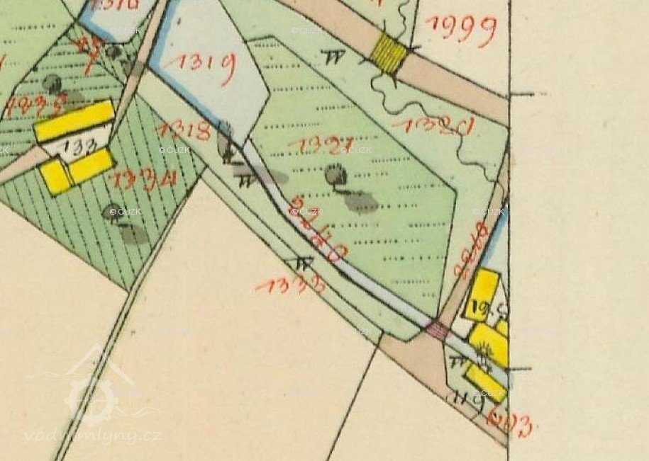 PopisByla zde 2 kola na svrchní vodu, průtok 0,088 m3/s, spád 4,6 m, výkon 3,5 k.