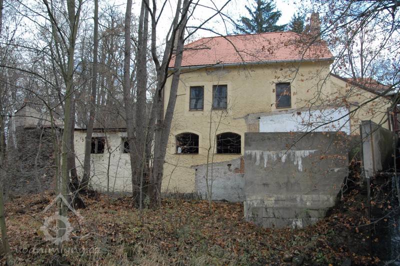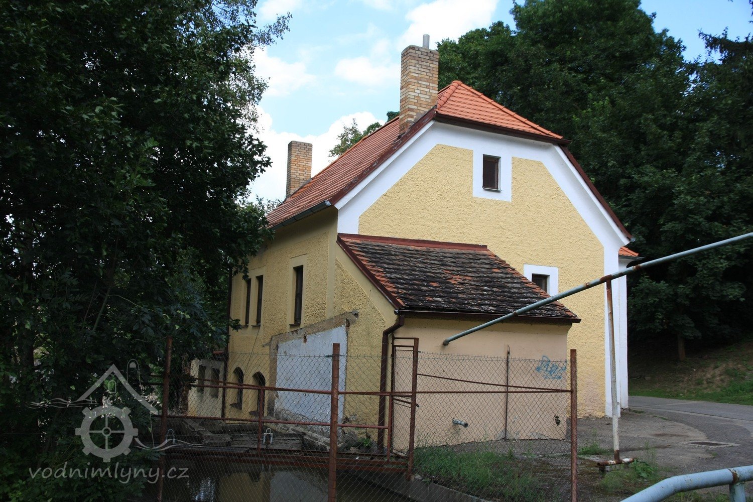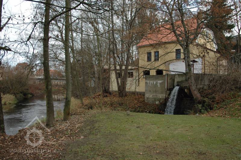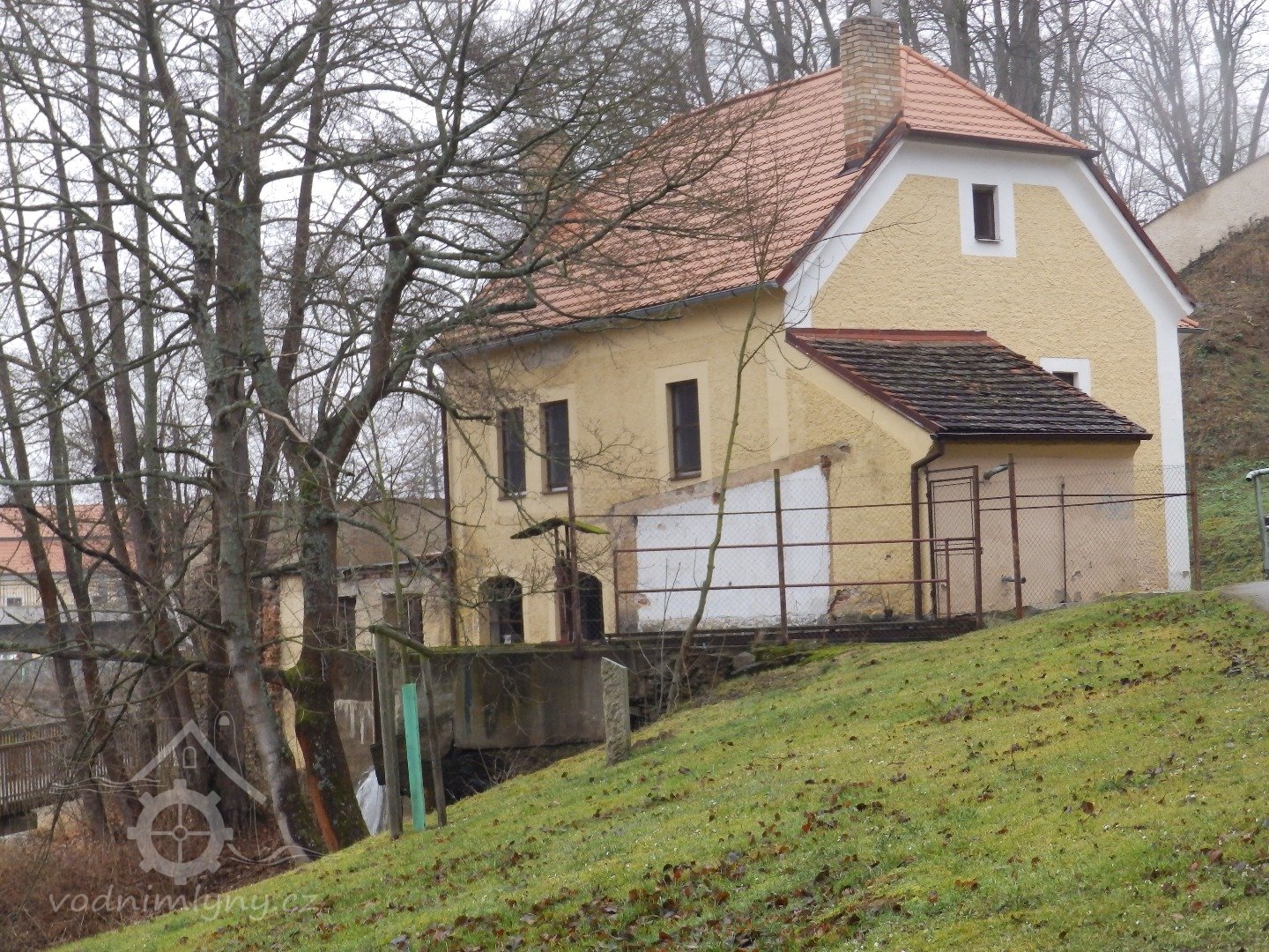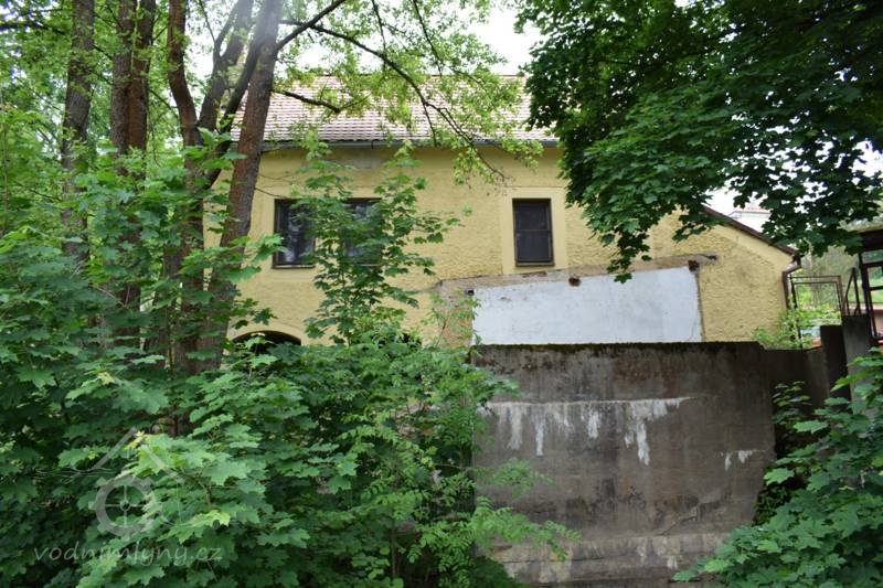 PopisNa konci osmdesátých let byl betonový přepad osazen násavnou axiální neregulovatelnou turbinou vyráběnou v Metazu Týnec. Tento stroj dodává do sítě napětí 3x380 voltů o výkonu asi 10 kW. Zařízení pracuje bezobslužně, je pouze pravidelně kontrolováno a prováděno čistění česlí od naplavených nečistot. Na počátku devadesátých let, v noci, zastavili tuto násavnou turbínu vandalové a ukradli její strojovou část. Pachatel může mluvit o štěstí, jednak, že jej nedopadli, pak také, že nebyl na místě zabit proudem při 'odborném" odpojení rozvaděče a kontroléru, toto zařízení je totiž nastálo spojeno s rozvodnou sítí. Nová turbina je umístěna již v uzamčené nástavbě, nad původní turbinovou kašnou, odkud také nasává vodu.