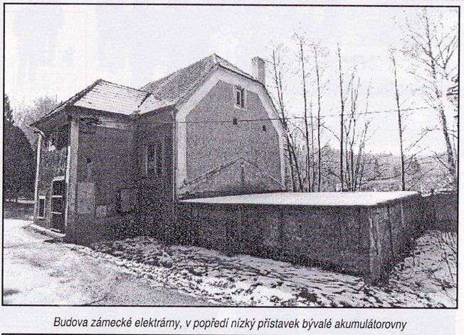 Technická stavba z roku 1914 postavená jako zázemí zámku v místě bývalého vodního mlýna s dvěma koly na horní vodu.
